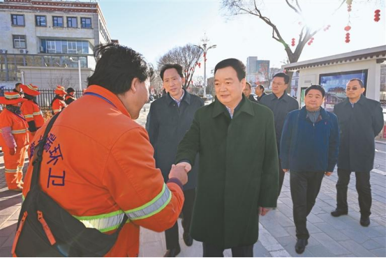 王君正来到拉萨市城关区金珠中路,看望慰问正在作业的环卫工人,感谢大家的默默付出,祝大家新年吉祥、身体健康。“今天的拉萨独具特色、美丽宜居,市民们以生活在这座城市而自豪。你们为城市建设作出了重要贡献,用勤劳双手把城市装扮得更加优美整洁,让市民生活得更加安逸舒适。”越是过节越是辛苦,王君正叮嘱有关部门要进一步关心关爱环卫工人,提升机械作业效率,科学设置休息驿站,做好防寒保暖和安全防护,在全社会营造尊重环卫、关爱环卫、支持环卫的良好氛围。