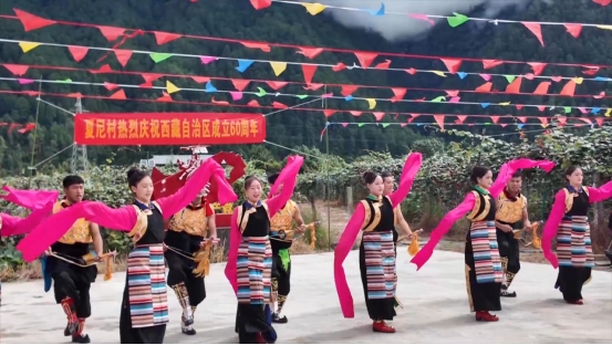 为热烈庆祝西藏自治区成立60周年,近日,察隅县夏尼村举行以“礼赞新时代·奋进新征程”为主题的群众性庆祝活动,邀请附近新村、巴安通村群众代表和驻地官兵参加。
