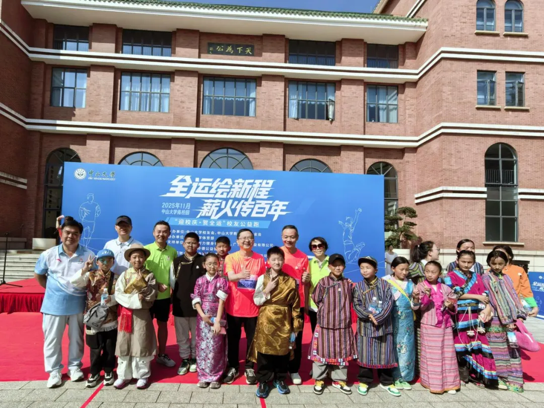 11月9日,是第十五届全国运动会开幕日。藉全运会这件盛事,来自墨脱县各中小学14名学生组成的墨脱县民族“三交”团(以下简称民族“三交”团)参加了当天上午在中山大学举行的“全运绘新程 薪火传百年”校友公益跑活动。活动上,中国科学院院士、中大校长高松手持全运会火炬,带领近300名校友师生和民族“三交”团一同进行了一场爱心公益跑。孩子们身着门巴族、珞巴族、藏族服饰,与校友师生们在中大校园内奔跑着,融汇成一道多民族交融的靓丽风景线。
