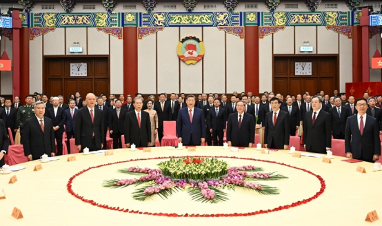 12月31日,全国政协在北京举行新年茶话会。党和国家领导人习近平、李强、赵乐际、王沪宁、蔡奇、丁薛祥、李希、韩正出席茶话会并观看演出。新华社记者 谢环驰 摄