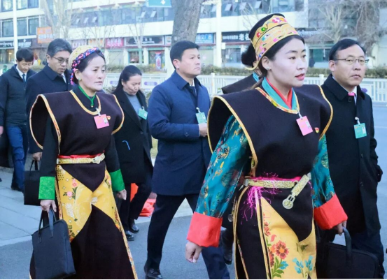 西藏自治区第十二届人民代表大会第四次会议今日上午隆重开幕。来自林芝市的与会人大代表、列席人员身着正装,精神饱满、意气风发地步入会场。