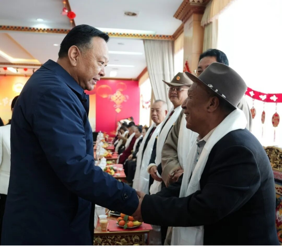 2月12日,林芝市各族各界喜迎2026年春节藏历新年茶话会举行。市委书记巴塔和市领导尼玛扎西、邓晓红、玉珍、段刚辉等与全市各族各界代表欢聚一堂、共迎佳节、共话发展。巴塔代表市委、人大、政府、政协向全市广大政协委员、各族干部群众、离退休老同志和关心支持林芝发展的社会各界人士,致以节日问候和诚挚祝福。