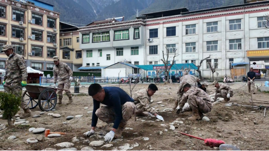 为深化双拥共建工作,传承军爱民、民拥军的优良传统,近日,波密县民政和退役军人事务局联合驻波某部队、国家隧道救援大队中铁二局西藏分队和扎木社区,在县民政和退役军人事务局特困中心院内开展翻地绿化志愿服务。