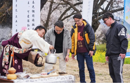 本次活动依托嘎拉村野生桃林的生态禀赋与春日盛景,创新采用“自然+文化+体验”的沉浸式呈现模式,将诗词雅集、藏茶品鉴、非遗音乐、民俗故事等巧妙融入万亩桃林的春日景致中,让参与者在桃花盛放的自然风光里,沉浸式触摸工布文化脉络,感受藏地非遗的独特魅力。