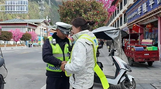 近日,波密县公安局交警大队在县城三个重点点位开展电动自行车、摩托车佩戴安全头盔专项检查,创新推出“接力式劝导”执法模式,让交通安全教育更接地气、更有实效。