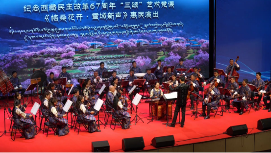 为纪念西藏民主改革67周年,深化“三颂”主题教育与文化润教等工作,推动优质文艺资源下沉基层,近日,西藏民族乐团《格桑花开・雪域新声》“三颂”艺术党课惠民演出走进工布江达县。