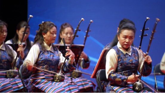 演出以习近平新时代中国特色社会主义思想为指导,全面贯彻新时代党的治藏方略,牢牢把握铸牢中华民族共同体意识主线,将“三颂”核心内涵深度融入节目编排,巧妙结合雪域民族音乐、汉藏文化交融等特色元素,涵盖器乐合奏、独唱、独奏、扎念弹唱等多种表演形式,我区知名歌手与艺术家悉数登台,倾情演绎《欢乐节日》《西藏春天》《雪山,我生长的地方》等经典曲目,节目既饱含浓郁的雪域民族风情,又彰显厚重的时代情怀与爱党爱国底色。