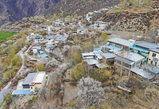 从林芝市区出发,沿560国道向朗县行驶,穿过连绵群山,公路旁、山坡上、坳谷中,一栋栋掩映在桃花丛中的新藏式民居不时闪现,吸引了记者的目光。