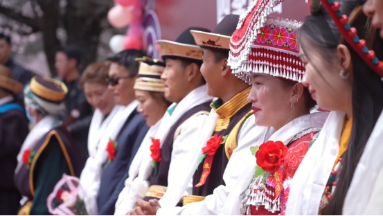 本次活动共吸引6对新人盛装参与,涵盖汉、藏、苗、哈尼等多个民族,是一场展现多元文化魅力、彰显民族大团结的温馨盛会。活动深度融合工布央恰传统婚俗文化,流程设计庄重而温馨,依次开展了新婚登记、集体颁证、鲜花赠送、同心许愿等特色环节。