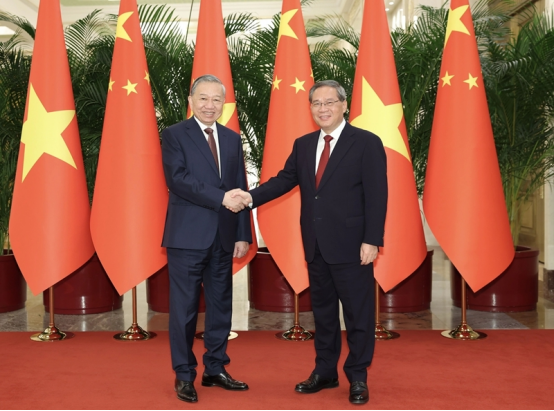 李强表示,今天上午,习近平总书记、国家主席同苏林总书记、国家主席举行会谈,就深入推进具有战略意义的中越命运共同体建设把舵定向。当前世界形势持续复杂演变,不稳定不确定因素增多,中越作为传统友邻,应当更加紧密团结协作。中方愿同越方遵循两党两国最高领导人的战略引领,坚定相互支持,深化务实合作,为两国人民带来更多福祉,为促进地区乃至世界的稳定繁荣作出新的贡献。