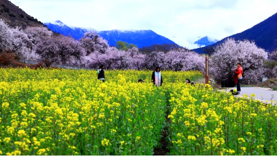 每逢桃花盛开时,来自全国各地的游客徜徉在花海之中,欣赏雪山桃林的自然美景。