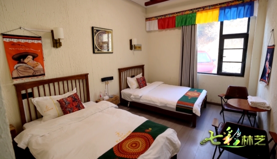 为了给游客打造与众不同的居住体验,民宿在设计上采用新藏式的装修风格。房间里,床榻、桌椅大多为木质,保留了原始的质感,触手生温;装饰的摆件,在色彩搭配上,选取了藏族传统偏好的明亮色系,像热烈的红、纯净的蓝,碰撞出独特的视觉效果。这种风格巧妙融合了藏文化元素,让游客在休憩时也能领略藏地风情,体验特色文化。