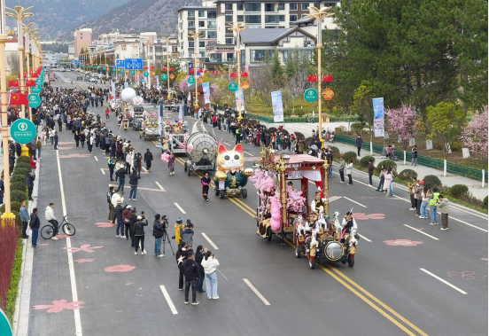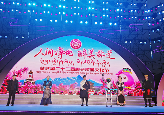 一是文艺演出精彩纷呈,展现林芝独特风情。4月3日晚,林芝第二十二届桃花旅游文化节盛大开幕,现场《林芝间》《玛恰霞布卓》《达东查姆》《千古之声》等十余个林芝本土非遗特色节目对外展示了林芝独特魅力,北京平谷《说唱脸谱》、峨眉派女子功夫团带来的功夫秀《英姿》以及充满岭南气息、潮汕文化特色的《英歌魂》街舞表演等节目,构成了汇聚各地文化的视听盛宴,特别是智能机器人“多吉”以藏汉双语演绎的“踏春之旅”,更成为新时代智慧文旅推广的生动注脚。与此同时,各县(市、区)分会场与主会场在时间和空间上联动,广泛开展文艺演出等各类庆祝活动。波密县分会场开幕式上,岭南龙狮与藏族热巴鼓相遇,刚柔并济,奏响民族团结的和谐乐章,“冰川王子”与“桃花仙子”带来的西藏原生态歌舞生动演绎出雪域文化的迷人风情;察隅县分会场晚会通过弦子表演、男女合唱、独唱、舞蹈等多种艺术形式,全方位、多角度地展现了察隅的生态之美、文化之韵与发展之势;米林市分会场晚会持续加强艺术交流合作,邀请拉萨城关区娘热艺术团、洋湖民间艺术团等演职人员共同参演,晚会上演最新原创作品9个,包括展现传统珞巴文化的组舞《云翎九色·珞巴织虹》等等,给现场观众带来了不一样的视听盛宴。
