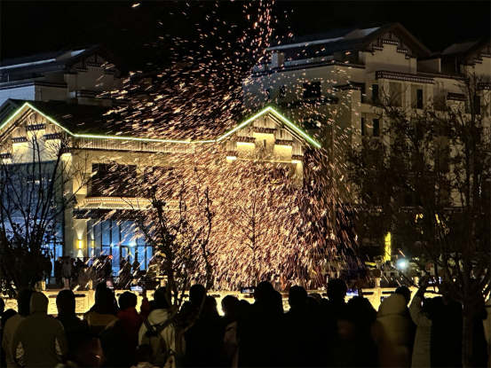 二是民俗文化活动丰富,增强游客互动体验。林芝第二十二届桃花旅游文化节主会场的“花海巡芳舞动林芝”创意花车巡游活动在林芝市工布公园举行。花车采用机械化设计,配有桃花主题艺术装置。花车上,工作人员手持哈达,身着当地特色服装,宣传林芝服饰文化。国家级非遗代表性项目米纳羌姆、“骑士穿越318相约林芝赏桃花”机车展演同步上演,吸引不少市民、游客围观。“铁花遇桃花、非遗迎春来”活动,将国家级非物质文化遗产打铁花技艺与林芝春日桃花景观创新融合。夜幕降临,铁水在空中绽放出绚丽的火花,与漫山遍野的桃花相互映衬,美不胜收。打铁花艺人精湛的技艺,让市民和游客朋友们惊叹不已,也让非遗文化在桃花节中得到传承与弘扬。分会场上,工布响箭、抱石头、摔跤等传统项目轮番登场,有力展示了林芝独特的民俗文化,游客们踊跃参与其中,切身感悟工布文化的深刻内涵。