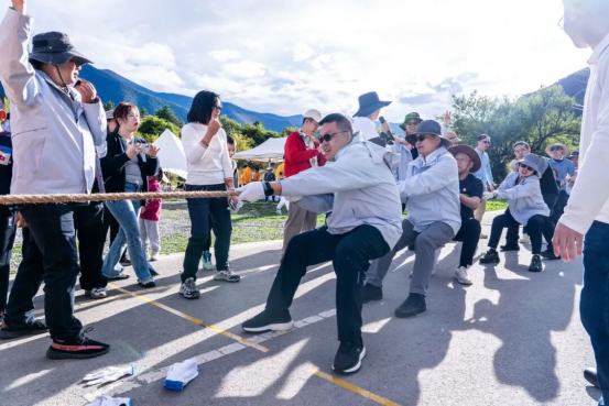 活动伊始,一场凝心聚力的拔河比赛奏响团结奋进的强音。广东省第十一批援藏工作队32名队员以广东公寓、福建公寓、教育组团以及县区组的名义组成的四支代表队身着队服戴队徽陆续登场。随着裁判哨声响起,呐喊声、助威声响彻藏南桃谷。全体援藏干部人才在竞技中增进了情谊,在协作中凝聚了共识,进一步强化了“一家人、一条心、一起干”的集体意识。