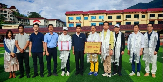10月12日,广东省鹤山市创美实业发展有限公司代表赴墨脱县开展教育爱心捐赠活动,为格当乡小学、墨脱县完全小学送去优质课桌椅,并向8名家庭困难学生发放慰问金。墨脱县委常务副书记、常务副县长王礼锋出席捐赠仪式,他在致辞中对创美实业发展有限公司的善行义举表示衷心感谢,指出,“这份情谊翻越了粤藏之间的千山万水”,勉励同学们珍惜社会各界的关爱与期待,勤奋学习、自强不息,将来回报祖国、建设家乡。