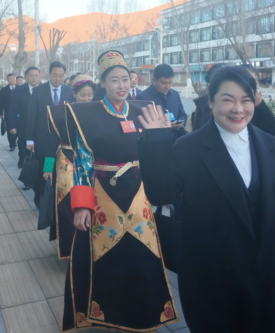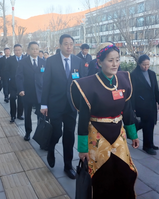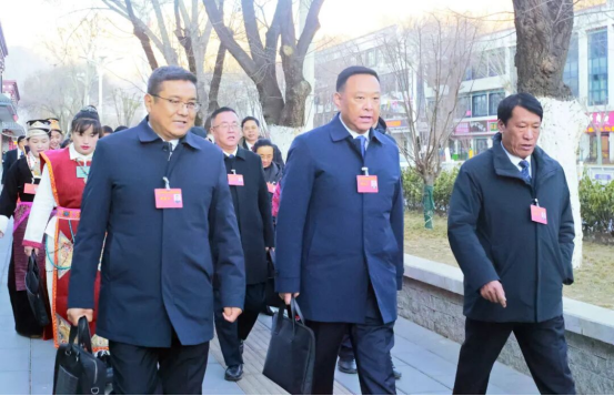 林芝市参加自治区十二届人大四次会议的人大代表、列席人员意气风发步入会场