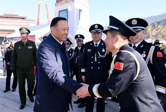1月10日,林芝市公安局在工布公园响箭广场开展庆祝第六个中国人民警察节系列活动,市委副书记、市长巴塔,市委副书记罗布次仁等市领导莅临现场观摩指导,详细了解林芝公安现代化警用装备配备、“林芝猎犬”警务实战运用、法治宣传等工作情况,看望广大民辅警,并通过他们向全市广大公安民辅警致以诚挚问候和节日祝福,希望全市公安机关要始终把政治建设摆在首位,深学笃行习近平总书记重要训词精神,增强“四个意识”、坚定“四个自信”、做到“两个维护”,坚守服务人民根本宗旨,深化“放管服”改革、践行新时代“枫桥经验”,严打突出违法犯罪、抓实风险隐患排查,让群众的获得感、幸福感、安全感更加充实、更有保障;要恪守执法公正价值取向,坚持纪律严明治警要求,锻造一支让党放心、让人民满意的过硬公安铁军,以新担当新作为为建设更高水平平安林芝、法治林芝贡献公安力量。