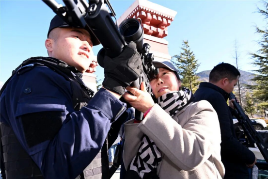 法治宣传活动现场,群众围着民警咨询法律问题,从“邻里纠纷怎么化解”到“网络维权有哪些途径”,从“交通事故怎么正确处理”到“如何防范网络诈骗”,民警一一耐心解答,赢得群众的认同理解和支持点赞。装备展示中,各类警用枪械、防暴装备、应急救援设备、特种车辆等依次亮相,民辅警讲解员现场细致介绍装备性能与用途,动作规范利落,讲解专业详实,充分展现了新时代林芝公安队伍的专业化素养。整齐排列的装备、震撼人心的展示画面,让现场群众直观感受到公安队伍守护平安的坚实底气,全方位彰显了新时代人民警察的责任担当与过硬实力。