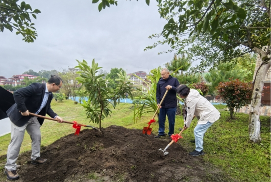 县委副书记、常务副县长杨彦龙等领导向考察组一行介绍了墨脱县基本情况及莲花公园院士林的由来。自院士林设立以来,已先后迎来多位院士亲手植树,此次五位院士共同种下5棵枇杷树,院士树总数已达22棵,一棵棵“院士树”见证着科学工作者与这片边疆土地的深厚情谊。墨脱县白肉枇杷品质优良,全县种植已超过8.5万棵,成为老百姓增收致富的重要途径。墨脱县坚持以习近平生态文明思想为指引,守好绿水青山,坚定不移走生态优先、绿色发展之路,推动生态优势有效转化为发展胜势。希望孩子们能在这批枇杷树成长的过程中,感受到来自科学工作者的鼓励与期许,茁壮成长、奋发有为。希望院士团队继续关注支持墨脱,在特色产业发展和人才培育方面给予更大力度的指导,共同助力科技强边固防、科技兴边富民。