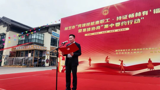 市总工会主要负责同志出席活动并致辞。致辞指出,此次系列活动既是市委、市政府心系一线劳动者、厚植为民初心的民生实事,更是全市群团组织深耕主责主业、擦亮暖心服务品牌的生动实践。为各级群团部门持续建强服务阵地、细化惠民举措,用心用情用力当好各族职工最可信赖、最为依靠的“娘家人”夯实了基础;号召全市广大职工群众大力弘扬劳模精神、劳动精神、工匠精神,扎根雪域高原、勇于担当作为,全力助推林芝高质量发展与改革开放先行突破,奋力书写“两地五区”建设崭新答卷。一是党建引领聚合力,群团共建织密服务网络。坚持党建带群建、群建促党建,统筹整合工会等群团力量,明晰职能、协同发力。工会筑牢职工服务主阵地,共青团凝聚青年奋进新动能,妇联彰显巾帼建功新风采,残联传递扶残助残温情暖意,工商联搭建政企沟通连心桥梁。