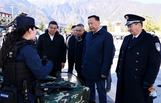 1月10日,林芝市公安局在工布公园响箭广场开展庆祝第六个中国人民警察节系列活动,市委副书记、市长巴塔,市委副书记罗布次仁等市领导莅临现场观摩指导,详细了解林芝公安现代化警用装备配备、“林芝猎犬”警务实战运用、法治宣传等工作情况,看望广大民辅警,并通过他们向全市广大公安民辅警致以诚挚问候和节日祝福,希望全市公安机关要始终把政治建设摆在首位,深学笃行习近平总书记重要训词精神,增强“四个意识”、坚定“四个自信”、做到“两个维护”,坚守服务人民根本宗旨,深化“放管服”改革、践行新时代“枫桥经验”,严打突出违法犯罪、抓实风险隐患排查,让群众的获得感、幸福感、安全感更加充实、更有保障;要恪守执法公正价值取向,坚持纪律严明治警要求,锻造一支让党放心、让人民满意的过硬公安铁军,以新担当新作为为建设更高水平平安林芝、法治林芝贡献公安力量。