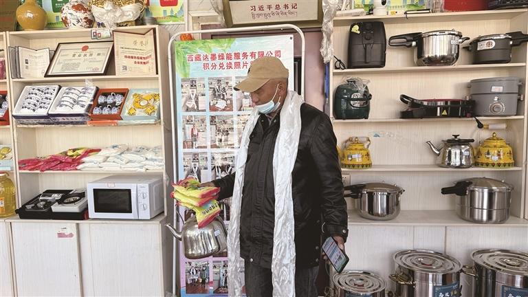 当时,该超市还有其他群众在兑换物品。“垃圾放在这里变成了值钱的东西,真正实现了变废为宝!”德庆镇村民旺姆捧着手机,满脸笑意地向记者展示积分页面里面她的5386积分,她正盘算着兑换5套规格不同的铝锅和一套甜茶餐具。“之前用积分换过大米、洗衣液、洗洁精、油等物品,这次想换些实用的大件。”旺姆说,最让她满意的是兑换的奶粉,“省下了制作甜茶时,买奶粉的钱,这积分兑换真是办到了我们心坎里。”