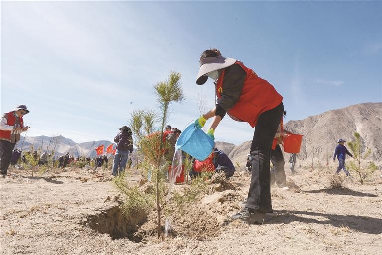 拉萨开展南北山绿化春季义务植树主题党日活动