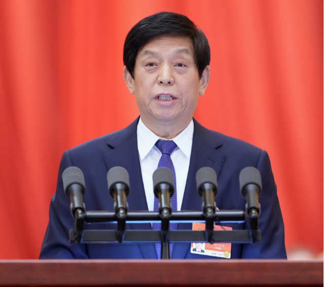 受全国人大常委会委托,栗战书委员长向大会报告全国人大常委会工作。栗战书在报告中指出,在以习近平同志为核心的党中央坚强领导下,全国人大常委会坚持以习近平新时代中国特色社会主义思想为指导,深入贯彻习近平法治思想,履职尽责、积极作为,为推动重大工作部署、应对重大风险挑战、维护国家安全提供法律保障,有效发挥了国家权力机关的职能作用。