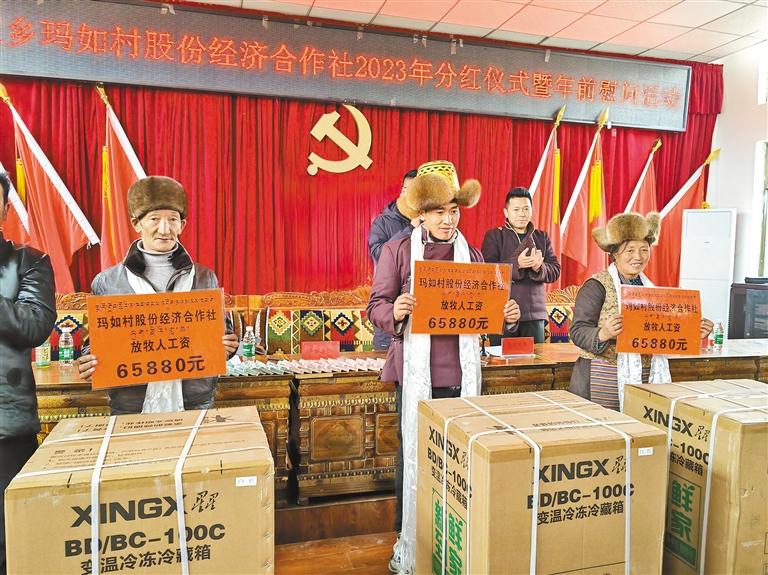 图为玛如村举办产业分红和工资发放仪式现场。本报记者 丹增平措 摄