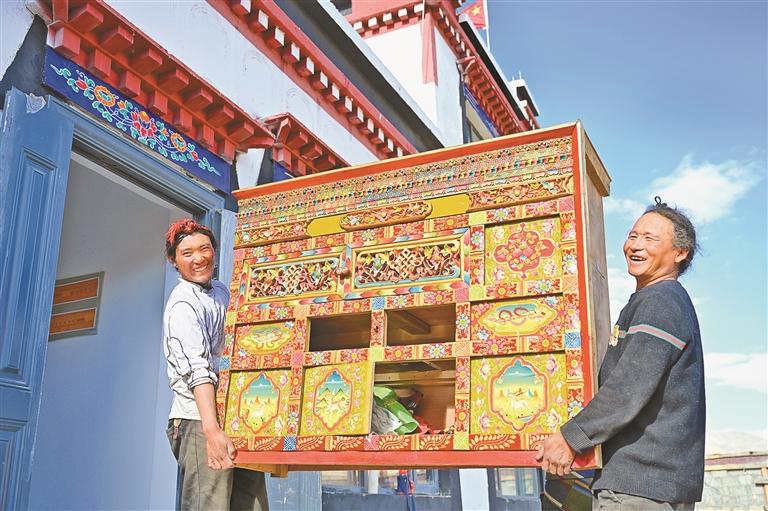 图为定日县措果乡野江村村民往新房里搬家具(资料图片)。本报记者 平措次仁 摄