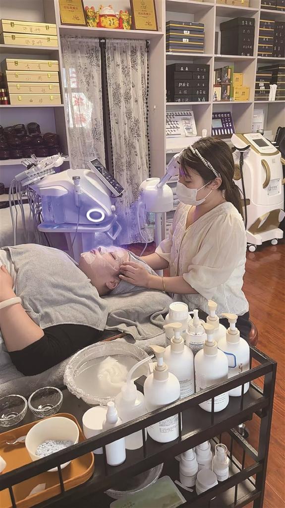 如今的“伊简梅”生意红火,新老顾客络绎不绝。为扩大知名度,何菊紧跟潮流尝试线上推广:每天拍摄护理过程、产品介绍、顾客反馈等短视频,发布在抖音、微信视频号等平台,还定期推出肩颈按摩体验等促销活动。“线上宣传能让更多人了解我们,但效果才是留住顾客的关键,现在老顾客转介绍占客源的一半以上。”何菊说。
