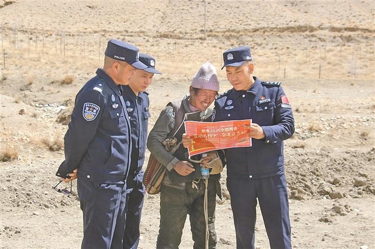 走进牧区。宣讲小分队聚焦群众关切,用汉藏双语解读惠民政策。从乡村振兴、医疗养老保障到基础设施改善,民警结合边境牧区发展实际,把全国两会精神转化为群众听得懂、能理解的“家常话”。针对群众关注的特色产业发展、民生补贴等问题,民警现场答疑解惑,收集意见建议,让惠民政策真正走进牧民心坎里。