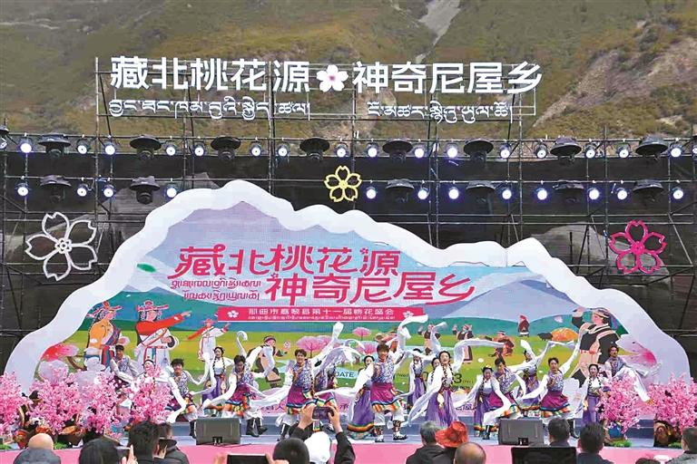 图为那曲市嘉黎县第十一届桃花盛会开幕式文艺演出。本报记者 汪纯 赵书彬 摄