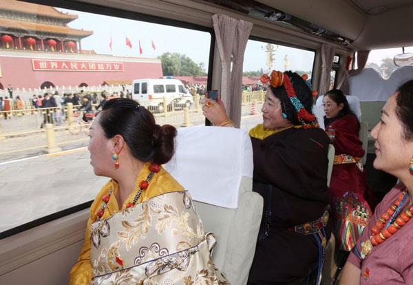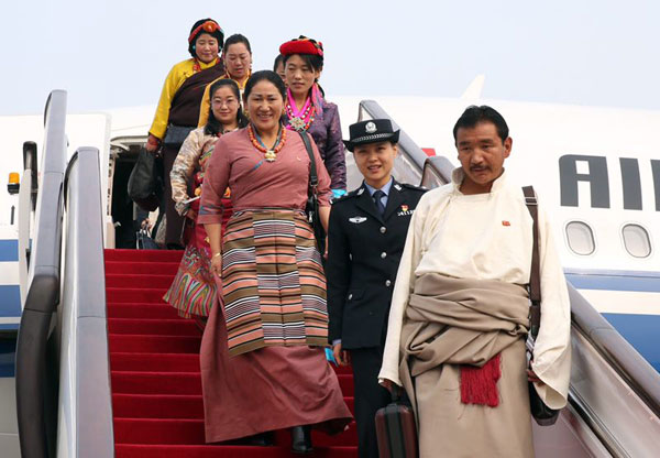 出席中国共产党第十九次代表大会的西藏代表抵达北京