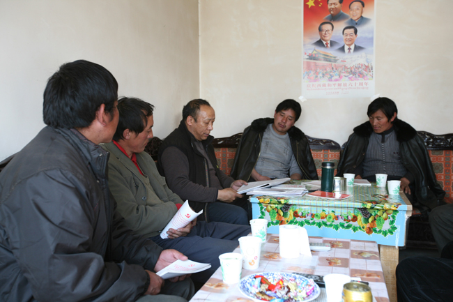 2012年6月22日,区发改委驻波密县海定村工作队队长米玛平措同志(中)组织学习陈全国书记回信。